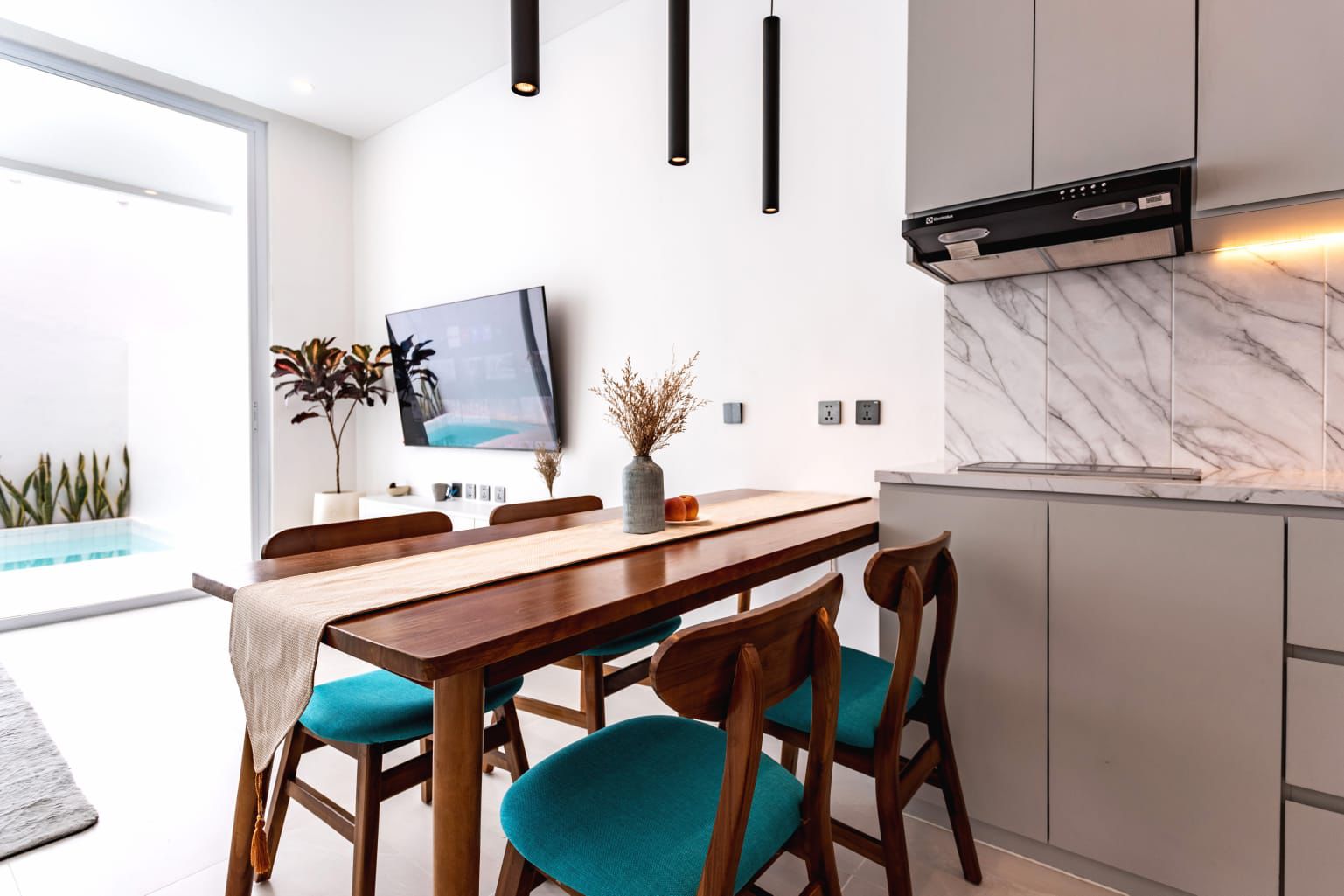 This brand new minimalist 2BR townhouse with pool is just 750m from the recently upgraded Batu Balig beach.